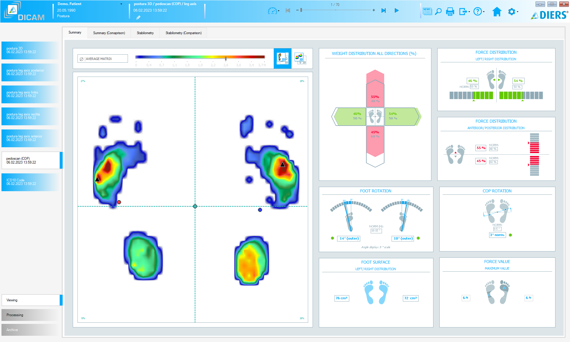 • Softwaremodul zur statischen und dynamischen Fußdruckmessung sowie zur Druckschwerpunktanalyse (Stabilometrie).